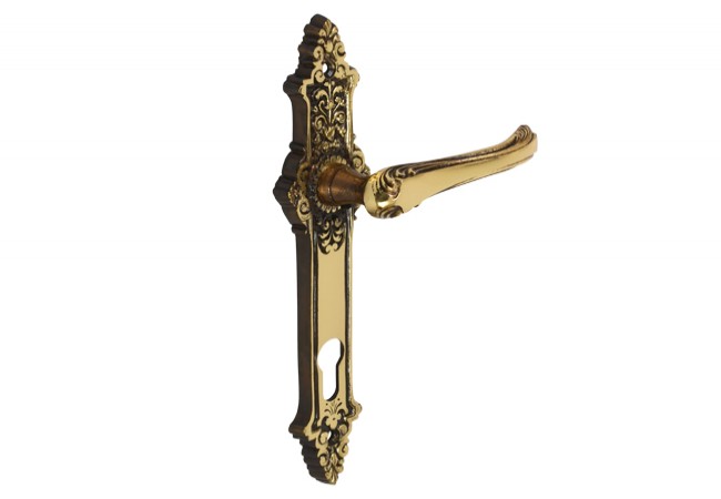Piękne i zdobne na tyle, że same w sobie mogą stanowić element wystroju wnętrza. Ich błyszczące wykończenie z pewnością będzie przykuwać wzrok przechodniów i cieszyć ich oczy. Mimo postarzanego wyglądu klamki te są wysoce ergonomiczne i usprawniają korzystanie z drzwi wewnętrznych. Ozdobne klamki na długim szyldzie nie tylko będą pasować do wnętrz kościołów i pałaców, ale także domów urządzonych i przyozdobionych w klimacie Art Deco. Mosiądz to przecież jeden z najtrwalszych i najbardziej szlachetnych surowców służących do wykonywania klamek drzwiowych. Zapewnia on nieporównywalną trwałość i odporność produktów na uszkodzenia. Zamknięcia występują w wersji WC, na wkładkę cylindryczną oraz klasyczny, gruby klucz. Dzięki specjalnym śrubom zawartym w zestawie instalacja klamki jest bezproblemowa. Podana cena obejmuje klamkę na stronę zewnętrzną i wewnętrzną drzwi.