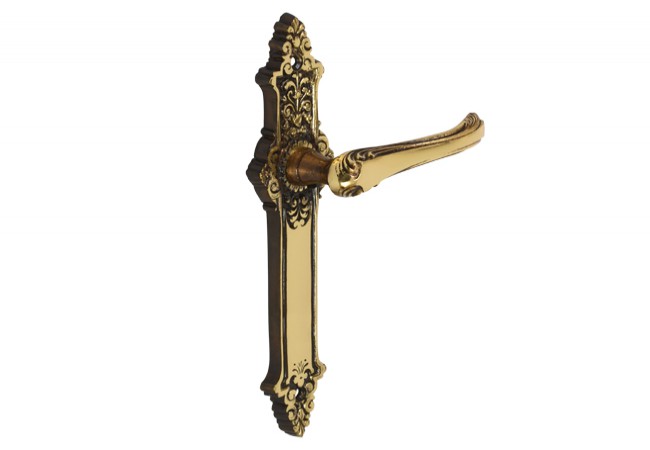 Piękne i zdobne na tyle, że same w sobie mogą stanowić element wystroju wnętrza. Ich błyszczące wykończenie z pewnością będzie przykuwać wzrok przechodniów i cieszyć ich oczy. Mimo postarzanego wyglądu klamki te są wysoce ergonomiczne i usprawniają korzystanie z drzwi wewnętrznych. Ozdobne klamki na długim szyldzie nie tylko będą pasować do wnętrz kościołów i pałaców, ale także domów urządzonych i przyozdobionych w klimacie Art Deco. Mosiądz to przecież jeden z najtrwalszych i najbardziej szlachetnych surowców służących do wykonywania klamek drzwiowych. Zapewnia on nieporównywalną trwałość i odporność produktów na uszkodzenia. Zamknięcia występują w wersji WC, na wkładkę cylindryczną oraz klasyczny, gruby klucz. Dzięki specjalnym śrubom zawartym w zestawie instalacja klamki jest bezproblemowa. Podana cena obejmuje klamkę na stronę zewnętrzną i wewnętrzną drzwi.