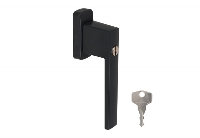 PAX rectangular window handle with key, L-35 mm spindle, black 9005 (A260-9005-35)