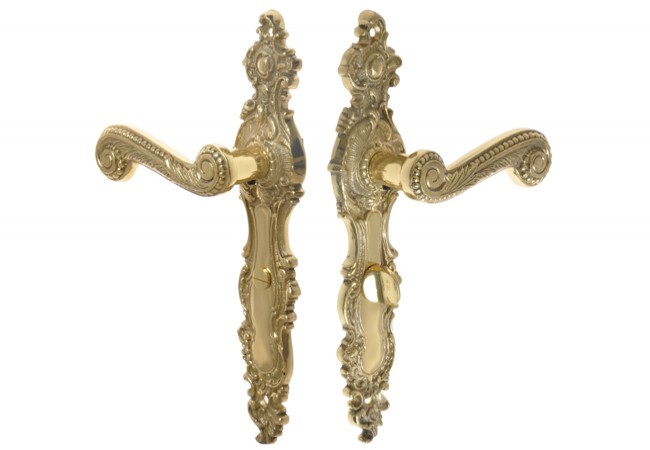 Piękne i zdobne na tyle, że same w sobie mogą stanowić element wystroju wnętrza. Ich błyszczące wykończenie z pewnością będzie przykuwać wzrok przechodniów i cieszyć ich oczy. Mimo postarzanego wyglądu klamki te są wysoce ergonomiczne i usprawniają korzystanie z drzwi wewnętrznych. Ozdobne klamki na długim szyldzie nie tylko będą pasować do wnętrz kościołów i pałaców, ale także domów urządzonych i przyozdobionych w klimacie Art Deco. Mosiądz to przecież jeden z najtrwalszych i najbardziej szlachetnych surowców służących do wykonywania klamek drzwiowych. Zapewnia on nieporównywalną trwałość i odporność produktów na uszkodzenia. Zamknięcia występują w wersji WC, na wkładkę cylindryczną oraz klasyczny, gruby klucz. Dzięki specjalnym śrubom zawartym w zestawie instalacja klamki jest bezproblemowa. Podana cena obejmuje klamkę na stronę zewnętrzną i wewnętrzną drzwi.