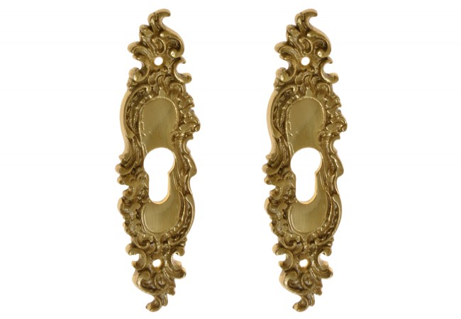 Ozdobny szyld drzwiowy który będzie stanowić znakomite dopełnienie skrzydeł wejściowych dworków i pałaców. Element występuje w kolorze złotym oraz patynie, dzięki czemu idealnie dopasujesz go do reszty okuć: klamek, zawiasów i akcesoriów wewnątrz pomieszczeń. Cechami, które zachęcają potencjalnych klientów są z pewnością atrakcyjny i elegancki wygląd, a także solidne wykonanie. Szyld ozdobny komponuje się perfekcyjnie z drewnianymi skrzydłami oraz tłoczonymi frontami Produkt powstał w 100% z mosiądzu, dzięki czemu cechuje się wysoką wytrzymałością mechaniczną. Rozeta wykazuje dużą odporność na czynniki atmosferyczne: wodę, promieniowanie, mróz. Posiada on otwór na wkładkę cylindryczną, która ma zapewnić pełnię ochrony naszej posiadłości. Ozdobny design dopasowany do klasycznych wnętrz, świetna jakość i bezkonkurencyjna cena.