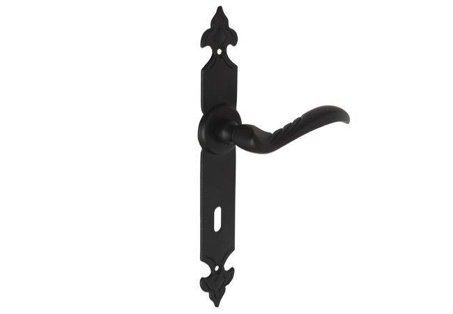 Retro door handle on a forged plate, black 72 KL (KKR1)
