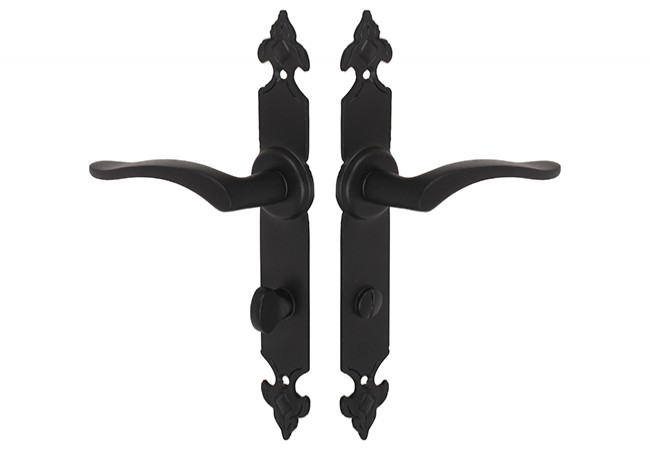 Retro door handle on a forged plate, black, 72 WC (KKR2)