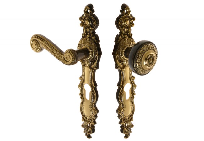 Klamko-gałki mosiężne będą pasowały zarówno do drzwi zewnętrznych, jak i wewnętrznych dworków i pałaców. Wytworna, roślinna ornamentyka pasuje do stylowych wnętrz w stylu retro i stanowi uzupełnienie ich aranżacji. Klamka doskonale komponuje się z surowymi, drewnianymi wykończeniami skrzydeł drzwiowych. Ozdobne klamko-gałki dostępne będą z zamknięciem na klasyczny klucz piórowy oraz z otworem na wkładkę cylindryczną. Długą żywotność i odporność na zmieniające się warunki pogodowe zapewnia tworzywo z jakiego została wykonane - mosiądz. Produkty są wykonywane ręcznie i dostępne są w większości przypadków - na specjalne zamówienie klienta. Istotną informacją jest to, iż gałko-klamka do drzwi wymaga określenia strony z jakiej powinien się znaleźć dany uchwyt. Warto sprawdzić przed zakupem jaka strona będzie potrzebna do Państwa drzwi. Podana cena obejmuje gałkę na stronę zewnętrzną i klamkę na stronę wewnętrzną drzwi.