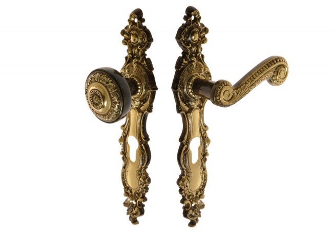 Klamko-gałki mosiężne będą pasowały zarówno do drzwi zewnętrznych, jak i wewnętrznych dworków i pałaców. Wytworna, roślinna ornamentyka pasuje do stylowych wnętrz w stylu retro i stanowi uzupełnienie ich aranżacji. Klamka doskonale komponuje się z surowymi, drewnianymi wykończeniami skrzydeł drzwiowych. Ozdobne klamko-gałki dostępne będą z zamknięciem na klasyczny klucz piórowy oraz z otworem na wkładkę cylindryczną. Długą żywotność i odporność na zmieniające się warunki pogodowe zapewnia tworzywo z jakiego została wykonane - mosiądz. Produkty są wykonywane ręcznie i dostępne są w większości przypadków - na specjalne zamówienie klienta. Istotną informacją jest to, iż gałko-klamka do drzwi wymaga określenia strony z jakiej powinien się znaleźć dany uchwyt. Warto sprawdzić przed zakupem jaka strona będzie potrzebna do Państwa drzwi. Podana cena obejmuje gałkę na stronę zewnętrzną i klamkę na stronę wewnętrzną drzwi.