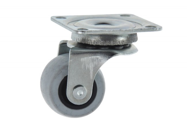 Description - Rubber wheel with bearing and plate, diameter 30 (load capacity up to 20 kg), gray