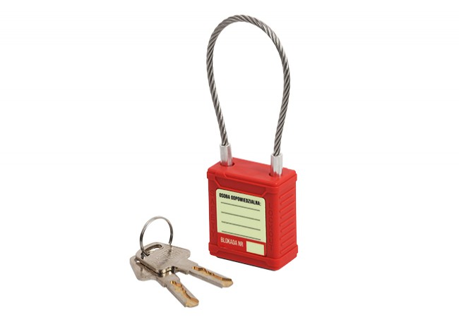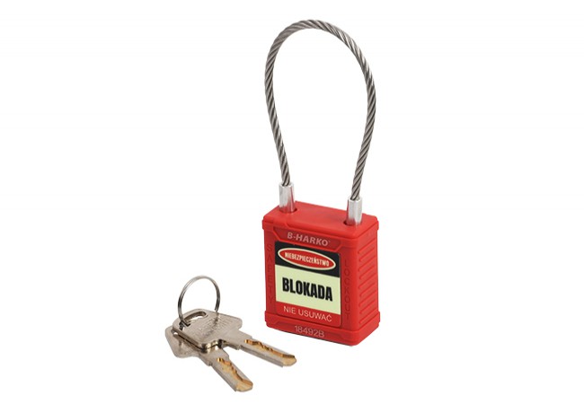 Safety padlock B-Harko Lockout with adjustable cable fi 3,2×150 mm, 2 klucze KD System, red