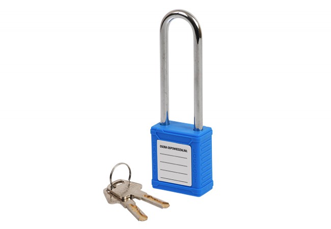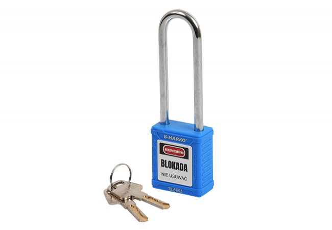 Safety padlock B-Harko Lockout with long steel shackle fi 6×78 mm, 2 klucze KD System, blue