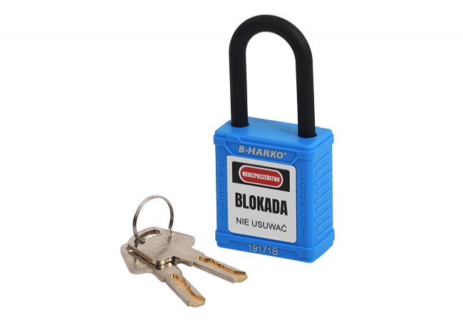 Safety padlock B-Harko Lockout with nylon shackle fi 6×38 mm, 2 klucze KD System, blue