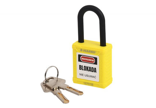 Safety padlock B-Harko Lockout with nylon shackle fi 6×38 mm, 2 klucze KD System, yellow