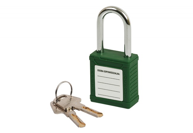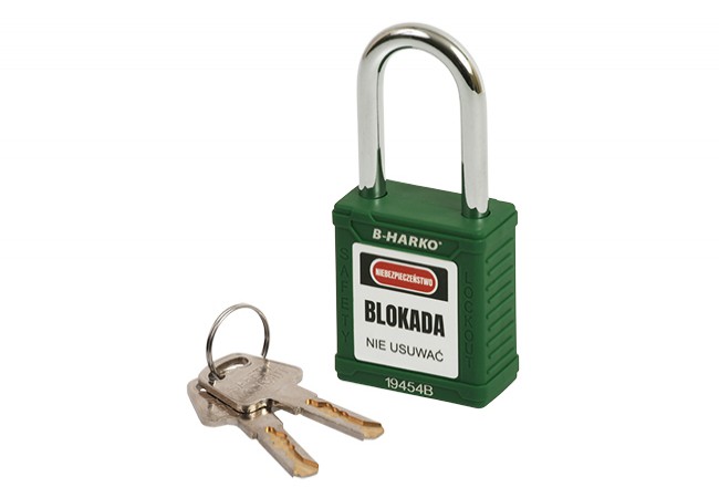 Safety padlock B-Harko Lockout with steel shackle fi 6×38 mm, 2 klucze KD System, green