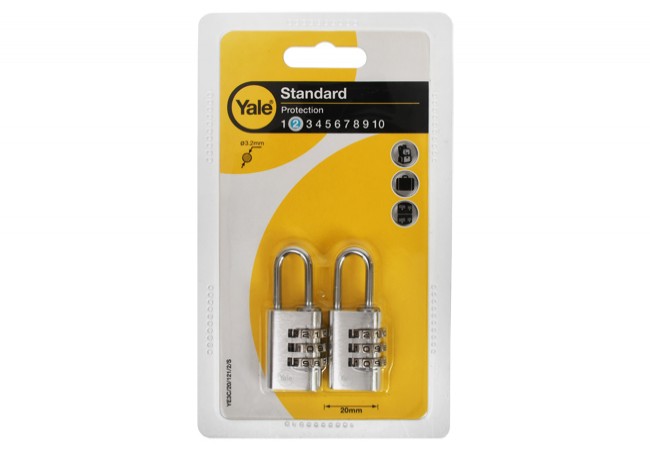 Description - Set of 2 Yale combination padlocks 20mm YE3C/20/121/2/S aluminum, silver (3-digit code)