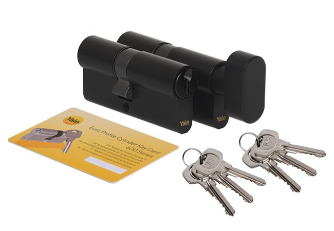 Set of Yale Y600 Euro Profile Cylinders, Black, 6 Keys, Class 6.D