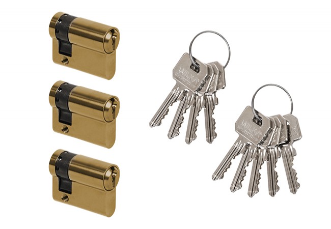 - Pojedyncze wkładki WILKA w zestawie mają wkładkę, wkręt montażowy i 3 klucze nacinane