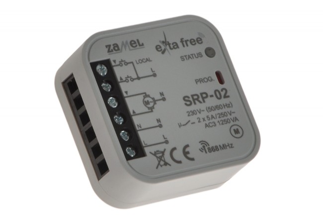 Sterownik rolet SRP-02 przeznaczony jest do sterowania napędami rolet okiennych, w których zastosowano silnik elektryczny 230 V z wyłącznikami krańcowymi. Urządzenie umożliwia relizację funkcji lokalnego i centralnego sterowania roletami oraz posiada możliwość zapisu trybów komfortowych. Tryby komfortowe umożliwiają ustawienie pozycji rolety w ustalonym położeniu (na ustalonej wysokości) oraz zapamiętanie tego położenia. Tryb centralny wykorzystuje się w przypadku pełnego opuszczenia lub podniesienia rolety lub grupy rolet, bez względu na ich aktualne położenie.