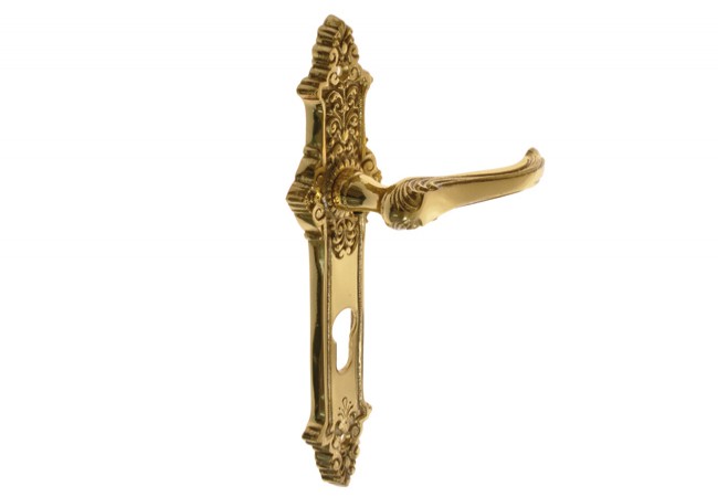 Piękne i zdobne na tyle, że same w sobie mogą stanowić element wystroju wnętrza. Ich błyszczące wykończenie z pewnością będzie przykuwać wzrok przechodniów i cieszyć ich oczy. Mimo postarzanego wyglądu klamki te są wysoce ergonomiczne i usprawniają korzystanie z drzwi wewnętrznych. Ozdobne klamki na długim szyldzie nie tylko będą pasować do wnętrz kościołów i pałaców, ale także domów urządzonych i przyozdobionych w klimacie Art Deco. Mosiądz to przecież jeden z najtrwalszych i najbardziej szlachetnych surowców służących do wykonywania klamek drzwiowych. Zapewnia on nieporównywalną trwałość i odporność produktów na uszkodzenia. Zamknięcia występują w wersji WC, na wkładkę cylindryczną oraz klasyczny, gruby klucz. Dzięki specjalnym śrubom zawartym w zestawie instalacja klamki jest bezproblemowa. Podana cena obejmuje klamkę na stronę zewnętrzną i wewnętrzną drzwi.