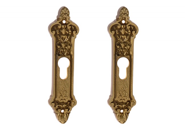 Ozdobny szyld drzwiowy który będzie stanowić znakomite dopełnienie skrzydeł wejściowych dworków i pałaców. Element występuje w kolorze złotym oraz patynie, dzięki czemu idealnie dopasujesz go do reszty okuć: klamek, zawiasów i akcesoriów wewnątrz pomieszczeń. Cechami, które zachęcają potencjalnych klientów są z pewnością atrakcyjny i elegancki wygląd, a także solidne wykonanie. Szyld ozdobny komponuje się perfekcyjnie z drewnianymi skrzydłami oraz tłoczonymi frontami Produkt powstał w 100% z mosiądzu, dzięki czemu cechuje się wysoką wytrzymałością mechaniczną. Rozeta wykazuje dużą odporność na czynniki atmosferyczne: wodę, promieniowanie, mróz. Posiada on otwór na wkładkę cylindryczną, która ma zapewnić pełnię ochrony naszej posiadłości. Ozdobny design dopasowany do klasycznych wnętrz, świetna jakość i bezkonkurencyjna cena.