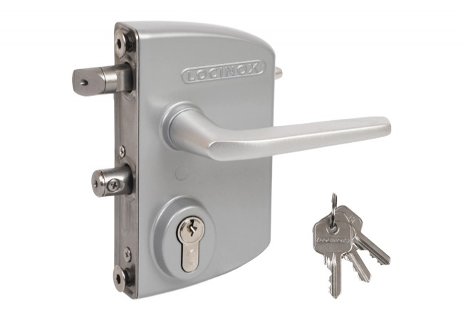 Description - Surface-mounted gate lock with handle for flat profiles from 10 to 30 mm, silver (LAPQ1010U2LZILVVSZM)