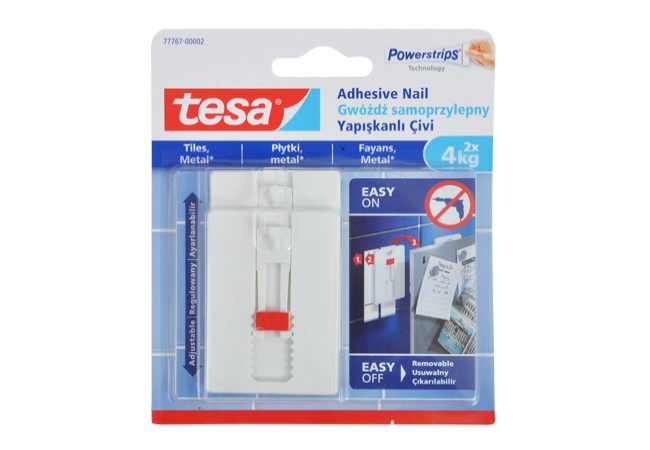 Description - Tesa Powerstrips Adjustable Adhesive Tile Nail, Load Capacity up to 4 kg, White (2 pcs.)