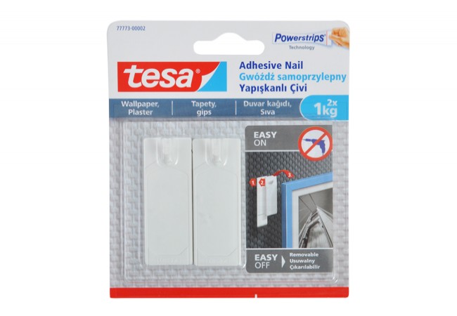 Tesa Powerstrips self-adhesive wallpaper nail, load capacity up to 1 kg, white (2 pcs.)