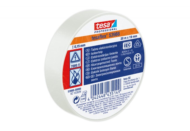 Description - Tesa Tesaflex 53947 PVC electrical insulating tape white, length 20 m, width 19 mm