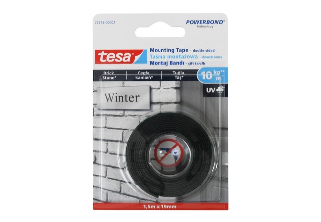 Description - Tesa Winter double-sided foam mounting tape for brick and stone exterior, length 1.5 m, width 19