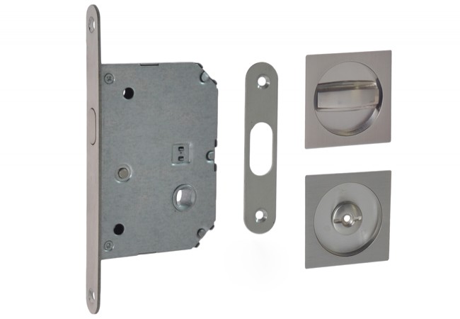 Toilet lock for sliding doors with square handle 55x55 mm satin