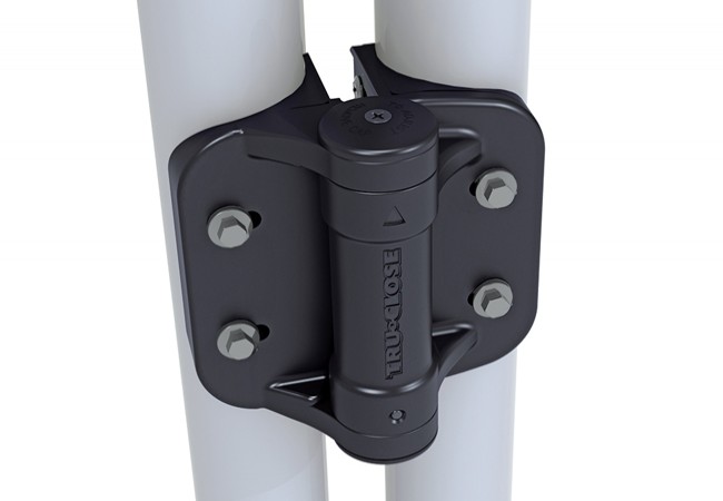 Description - TRUCLOSE ROUND HEAVY DUTY D&D self-closing hinges for security gates, for 48.3 mm tubes, 35 mm distance, 120 mm width (TCHDRND2S3/TCHDRND2-MK