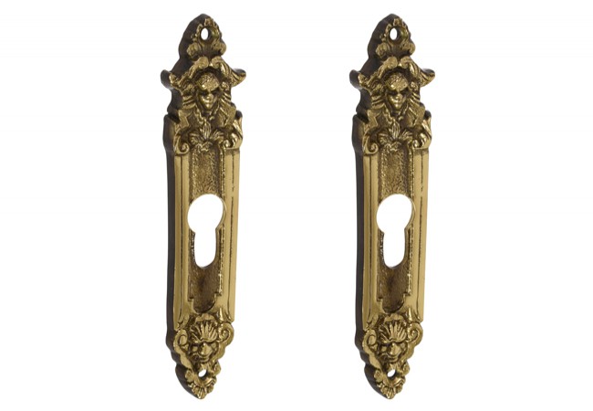 Ozdobny szyld drzwiowy który będzie stanowić znakomite dopełnienie skrzydeł wejściowych dworków i pałaców. Element występuje w kolorze złotym oraz patynie, dzięki czemu idealnie dopasujesz go do reszty okuć: klamek, zawiasów i akcesoriów wewnątrz pomieszczeń. Cechami, które zachęcają potencjalnych klientów są z pewnością atrakcyjny i elegancki wygląd, a także solidne wykonanie. Szyld ozdobny komponuje się perfekcyjnie z drewnianymi skrzydłami oraz tłoczonymi frontami Produkt powstał w 100% z mosiądzu, dzięki czemu cechuje się wysoką wytrzymałością mechaniczną. Rozeta wykazuje dużą odporność na czynniki atmosferyczne: wodę, promieniowanie, mróz. Posiada on otwór na wkładkę cylindryczną, która ma zapewnić pełnię ochrony naszej posiadłości. Ozdobny design dopasowany do klasycznych wnętrz, świetna jakość i bezkonkurencyjna cena.