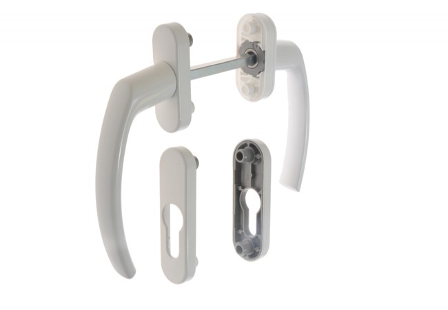 Description - Victory/ONYX/Pluton balcony handle for roller shutter, with a set of rosettes for insert, white (129.9016.00.45)