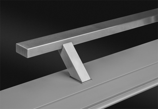 Description - WALA Q45RX single-sided bent handle, rectangular, 40x20 mm, X=800, L=1000, with button, stainless steel