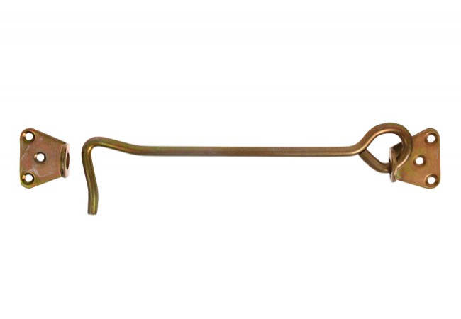 Haczyk okienny, ocynk żółty o długości 200 mm. Przeznaczony jest on do przytrzymywania drzwi i okien w pozycji otwartej.