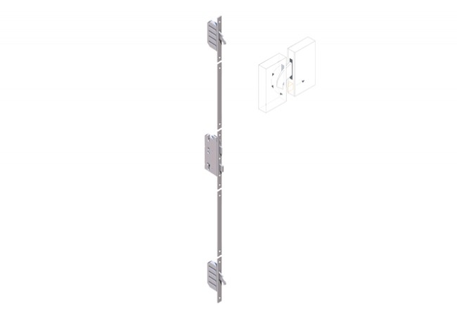 - Rygle wysuwają się 25 mm i zagłębiają w zaczepach na ościeżnicy (odporność na włamanie według EN 1627-1630 w klasie RC1 do RC3)