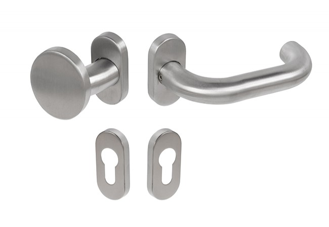 Gałko-klamka drzwiowa stała z szyldem owalnym na wkładkę Yacob trzpień 8mm, stal nierdzewna (ppoż.)(komplet)