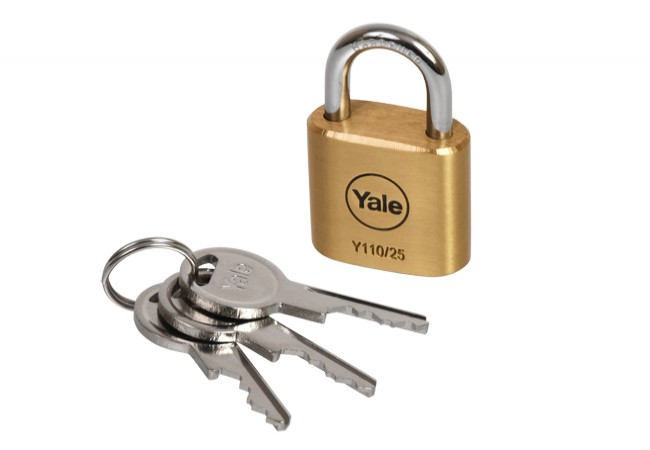Yale 25mm brass padlock Y110/25/115/1, reinforced shackle, 3 keys