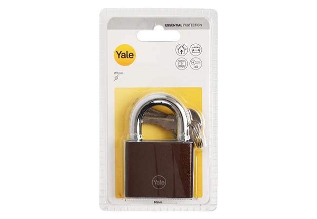 YALE YE11BR/50/128/1 cast iron latch shackle padlock, brown, 50mm blister