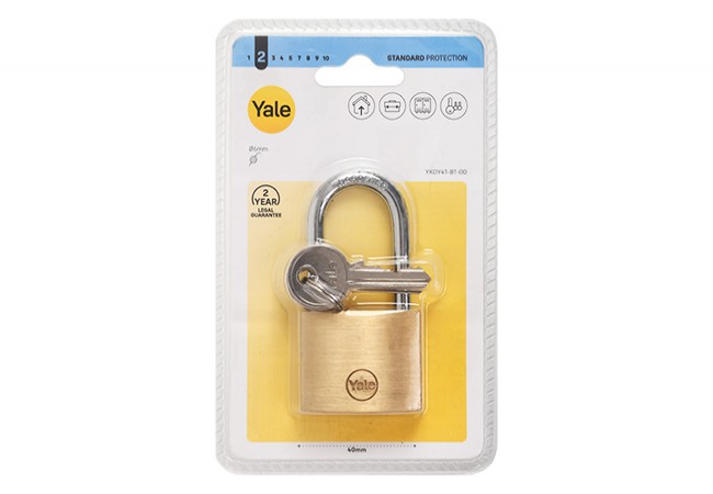 YALE YKDY41 brass cylinder latch padlock with extended shackle, blister