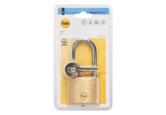 YALE YKDY51 brass cylinder latch padlock with extended shackle, blister